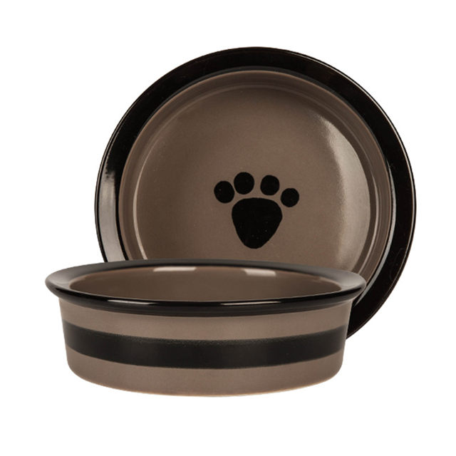 Casa » Produtos » Aparelho para animais de estimação » Tigela para animais de estimação » Círculo preto com pegadas Alimentador de cachorro circular de cerâmica impresso Alimentador de cerâmica rosa Pet Bowl