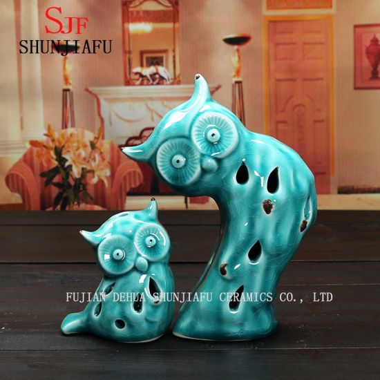 | Descrição | Coruja de Cerâmica Decorativa LED, Azul com Design de Poço |