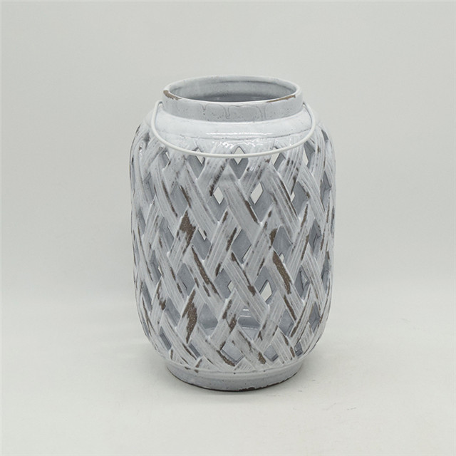 Casa » Produtos » Luz de furacão em cerâmica » Decoração de mobiliário doméstico Cilindro de cerâmica cinza claro Estilo de abóbora Escavar Lanterna de furacão