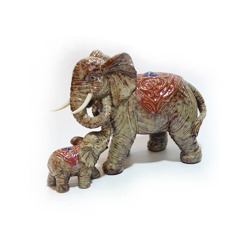 Elefante de cerâmica puxa bebê elefante de cerâmica grande estátua de elefante ornamento de cerâmica animal
