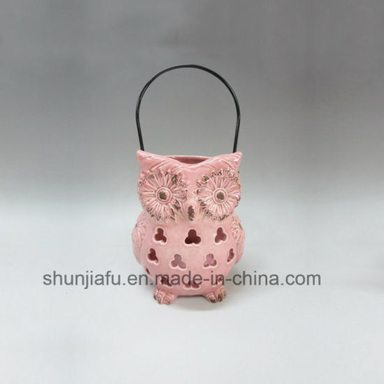 | Descrição | Castiçal cor-de-rosa cerâmico de Tealight da coruja. |
