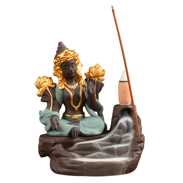 Casa » Produtos » Queimador de incenso » Queimador de incenso de refluxo » Mobiliário doméstico Decorar Estátua de Cerâmica verde Deusa Queimador de Incenso de Cerâmica