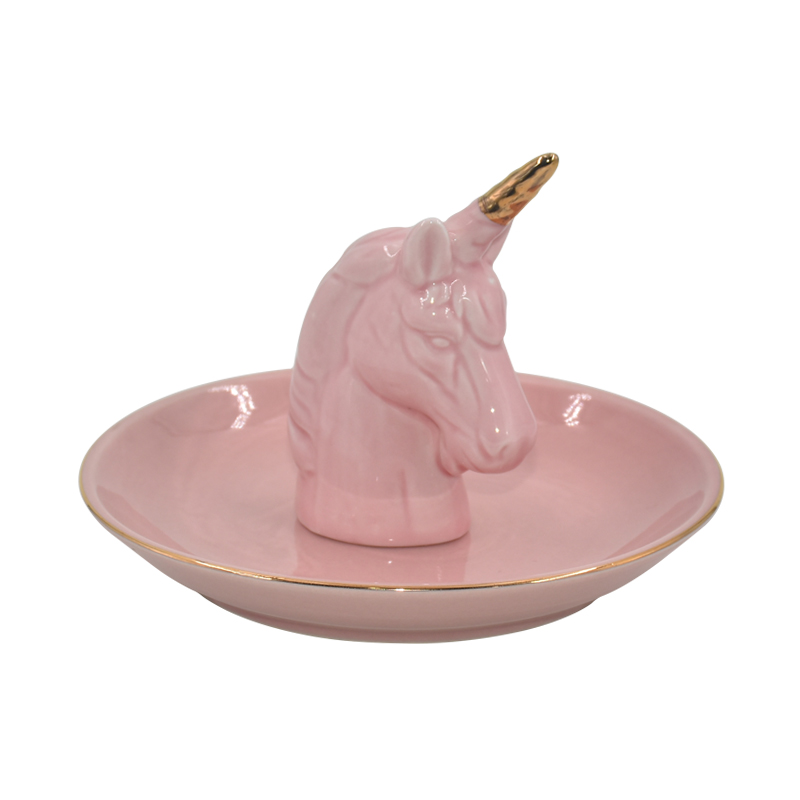 OEM casa decoração rosa estilo unicórnio design cerâmico jóias bandeja