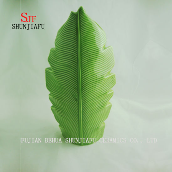 Descrição do Produto | Descrição | Vaso cerâmico verde da folha da banana de 3 tamanhos / A |